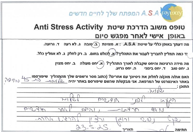 הצילום הינו חלק מטופס משוב לאחר מפגש הסיום של תוכנית A.S.A   Anti Stress Activity